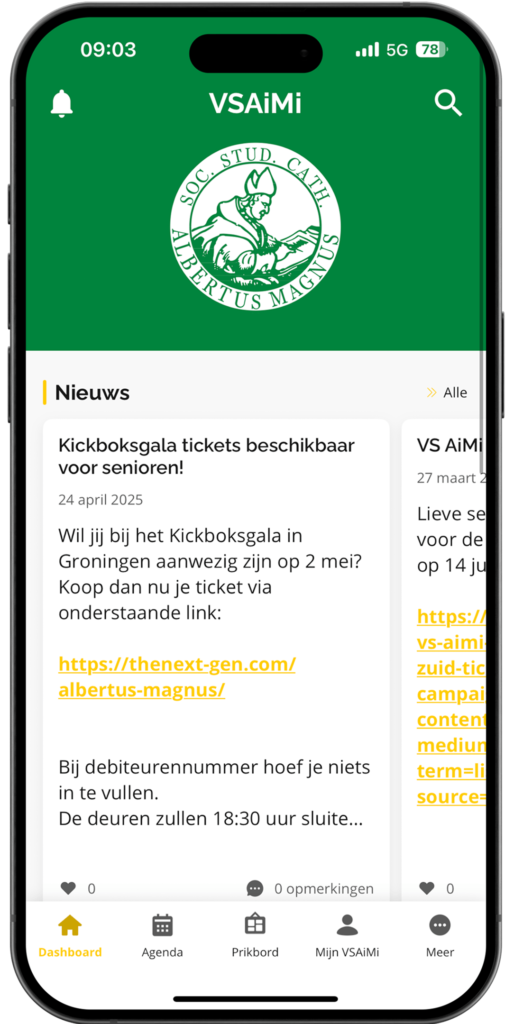 Alle updates worden doorgevoerd in de app, hier zal al het nieuws te vinden zijn maar ook de evenementen.